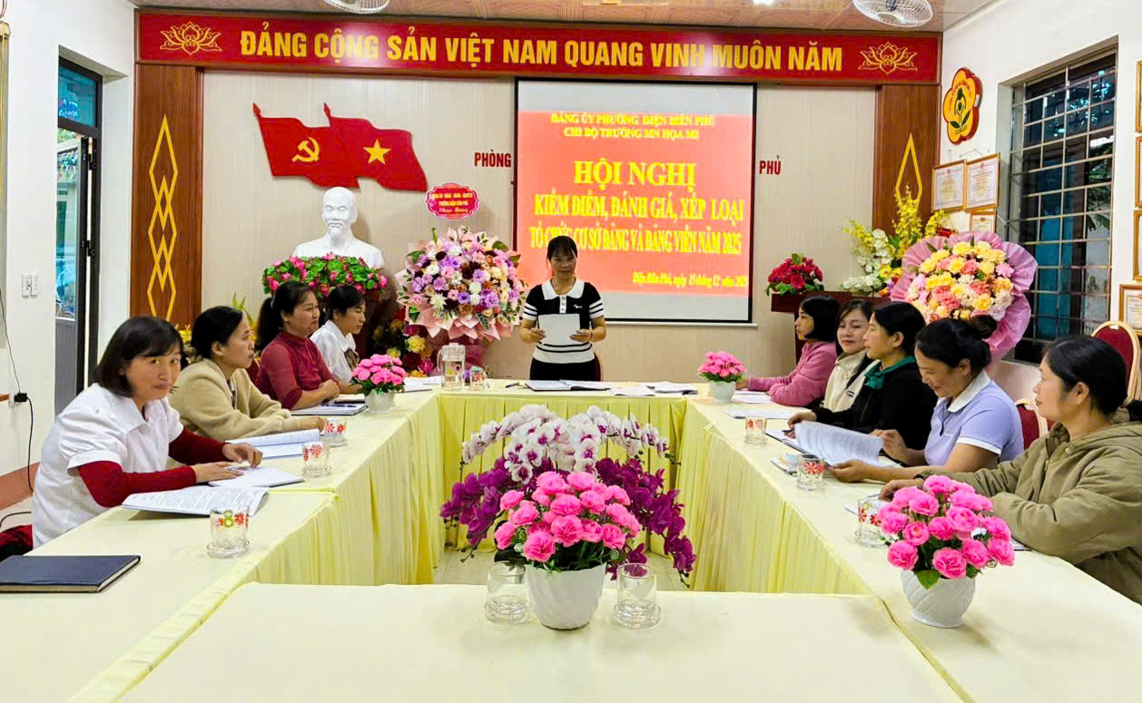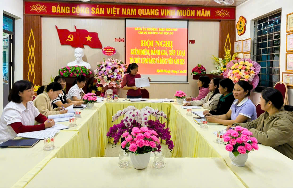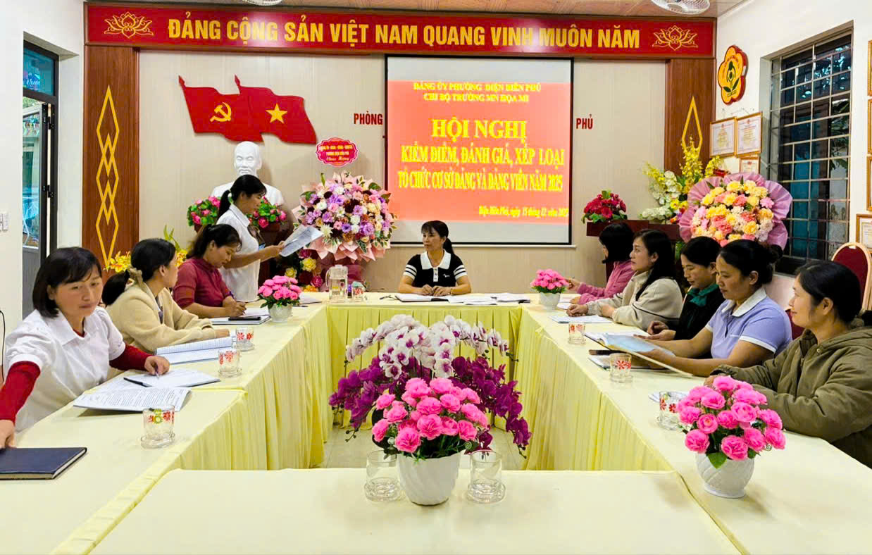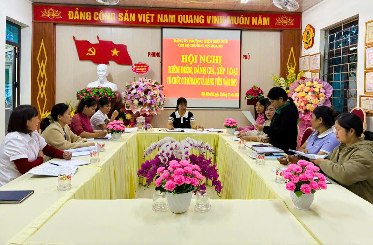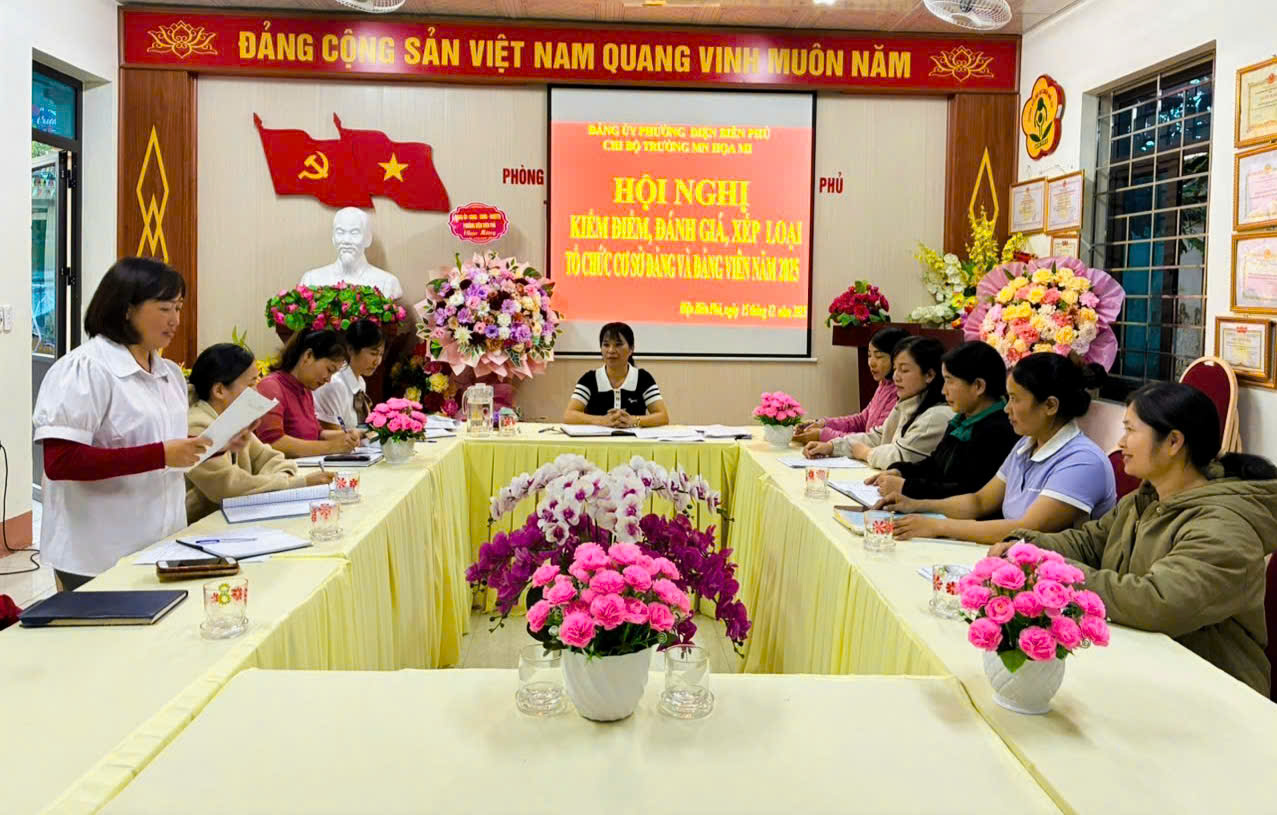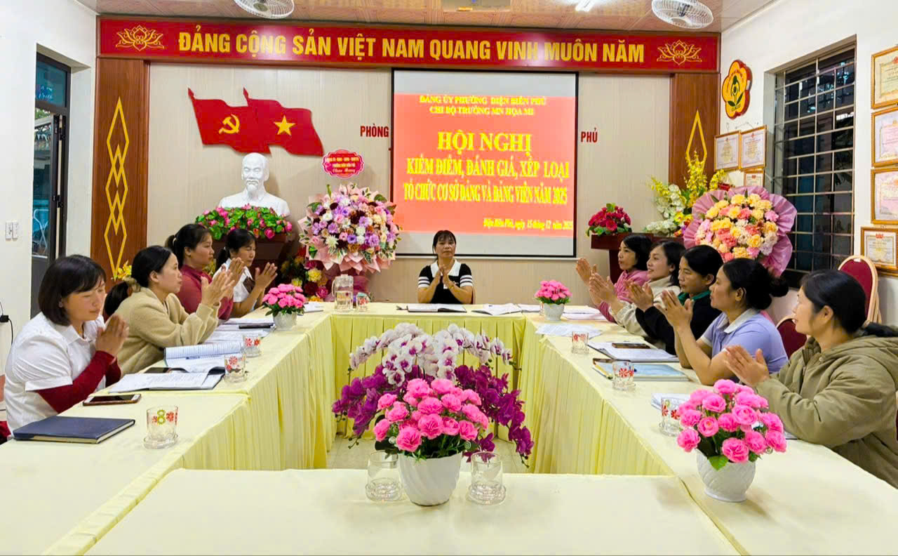 Thực hiện chỉ đạo của Đảng ủy phường Điện Biên Phủ về việc tổ chức kiểm điểm, đánh giá, xếp loại chất lượng tổ chức cơ sở đảng và Đảng viên năm 2025. Hôm nay ngày 15 tháng 12 năm 2025 chi bộ trường mầm non Họa Mi long trọng tổ chức hội nghị kiểm điểm, đánh giá, xếp loại chất lượng tổ chức cơ sở đảng và Đảng viên năm 2025.