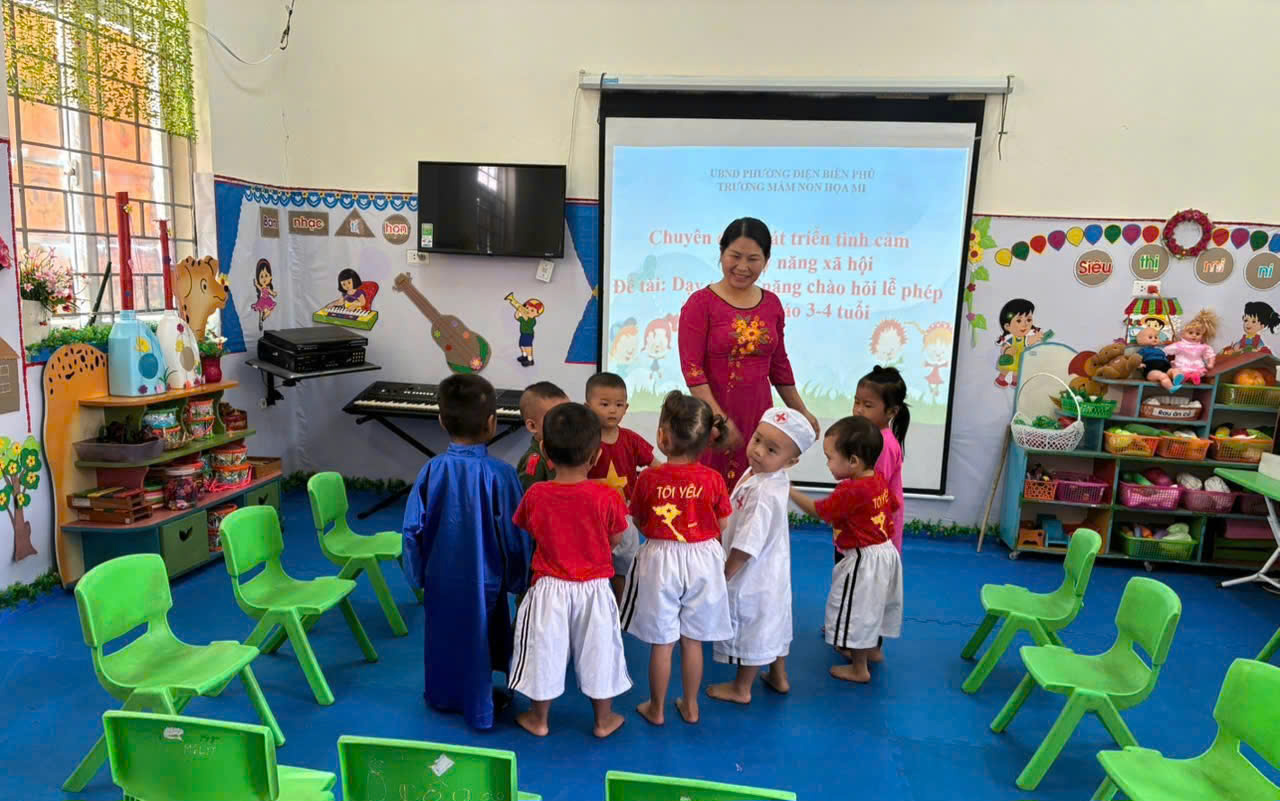 Thực hiện kế hoạch số 17/KH-MNHM ngày 16 tháng 09 năm 2025 của trường Mầm non Hoạ Mi về Kế hoạch sinh hoạt chuyên môn năm học 2025-2026. Sáng ngày 24/10/2025 trường Mầm non Họa Mi đã tổ chức thành công buổi sinh hoạt chuyên môn, chuyên đề cấp trường cho giáo viên. Lĩnh vực: Phát triển tình cảm – kỹ năng xã hội với 02 hoạt động chính: Tiết 1: Kỹ năng chào hỏi lễ phép, do cô giáo: Lầu Thị Dung thực hiện Qua các tình huống gần gũi và sinh động, học sinh được rèn luyện cách chào hỏi đúng mực, thể hiện sự tôn trọng với người lớn, bạn bè và những người xung quanh. Các em rất hào hứng khi được tham gia đóng vai, xử lý tình huống và thể hiện kỹ năng của mình một cách tự nhiên. Tiết 2: Kỹ năng về quyền bày tỏ cảm xúc, do cô giáo: Nguyễn Thị Quỳnh Liên thực hiện . Trong tiết học này, các em được tìm hiểu về các loại cảm xúc khác nhau và cách thể hiện cảm xúc phù hợp. Đồng thời, học sinh cũng được giới thiệu về quyền được bày tỏ ý kiến, cảm xúc của mình – một nội dung quan trọng trong giáo dục quyền trẻ em. Thông qua các hoạt động nhóm và chia sẻ cá nhân, các em đã thể hiện sự tự tin, thấu hiểu bản thân và bạn bè hơn. Buổi sinh hoạt chuyên môn, chuyên đề không chỉ nhằm nâng cao chất lượng sinh hoạt chuyên môn, chuyên đề cho giáo viên, kịp thời tháo gỡ những khó khăn, vướng mắc trong quá trình giảng dạy, mà còn giúp giáo viên có nhiều cơ hội, chia sẻ, trao đổi kinh nghiệm trong giảng dạy, tổ chức các hoạt động phù hợp với từng đối tượng trẻ, đặc biệt là trong việc hình thành kỹ năng sông, hình thành phẩm chất, năng lực và ý thức về quyền trẻ em trong bối cảnh giáo dục mới. Dưới đây là một số hình ảnh nổi bật của chuyên đề