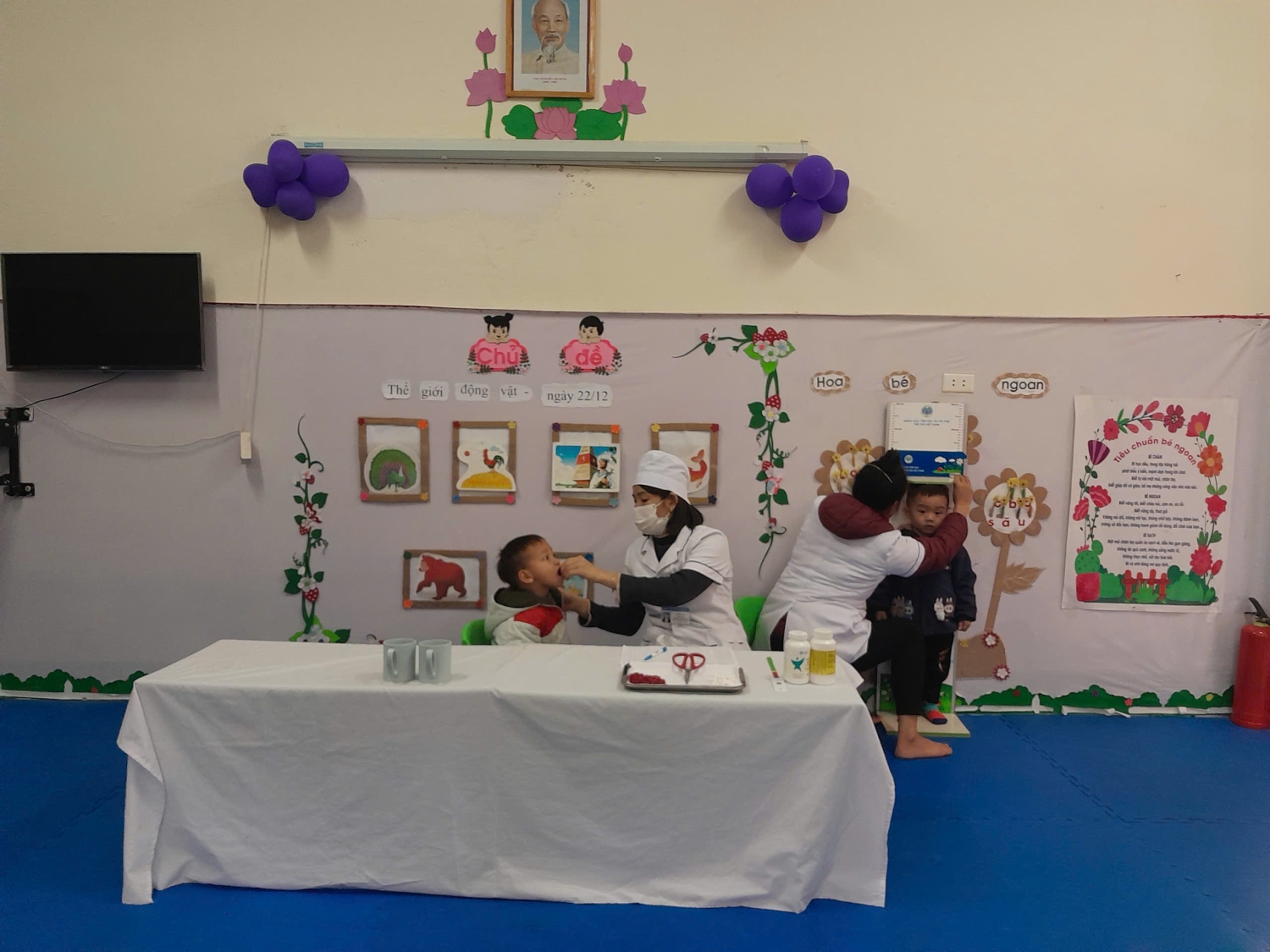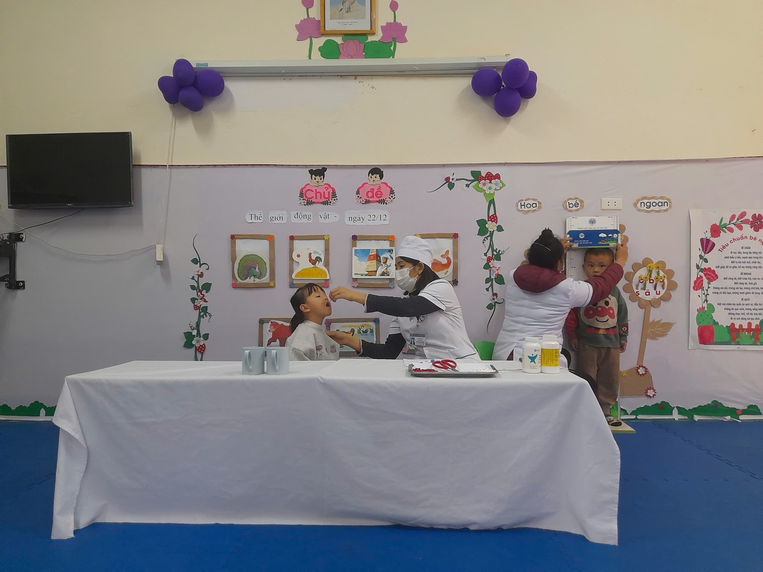 Trong năm học 2025- 2026, toàn bộ học sinh sẽ được khám sức khỏe định kỳ với hồ sơ lưu trữ điện tử, giúp phụ huynh nắm bắt kịp thời tình trạng sức khỏe con em. Nhà trường được khuyến khích cập nhật số liệu vào phần mềm quản lý sức khỏe học đường để thuận tiện cho theo dõi và tư vấn. Sáng ngày 11/12/2025, Trường Mầm non Hoạ Mi đã phối hợp cùng Trung tâm Y tế Phường Điện Biên Phủ tổ chức khám sức khỏe định kỳ cho toàn bộ trẻ trong trường. Hoạt động được thực hiện nhằm theo dõi thể chất, phát hiện sớm các vấn đề sức khỏe và đảm bảo trẻ phát triển toàn diện theo từng độ tuổi. Trong buổi khám, đội ngũ y bác sĩ đã tiến hành các nội dung gồm: + Khám tai – mũi – họng, răng – hàm – mặt. + Khám mắt, đo thị lực. + Khám da liễu, tim mạch và các bệnh lý thường gặp. + Tư vấn dinh dưỡng phù hợp cho từng trẻ. + Tổ chức cho trẻ uống vitamin theo đúng liều khuyến cáo và danh sách của từng lớp. Kết quả khám được ghi chép đầy đủ vào sổ theo dõi sức khỏe và gửi tới phụ huynh để tiện theo dõi. Nhà trường cũng sẽ phối hợp với phụ huynh trong việc chăm sóc, bổ sung dinh dưỡng và hỗ trợ trẻ có dấu hiệu sức khỏe cần lưu ý. Hoạt động khám sức khoẻ, uống vitamin định kỳ góp phần duy trì thể trạng khỏe mạnh, nâng cao hệ miễn dịch và hỗ trợ trẻ phát triển toàn diện. Trường Mầm non Hoạ Mi sẽ tiếp tục phối hợp với ngành y tế để thực hiện đầy đủ các đợt bổ sung vi chất theo kế hoạch hằng năm.